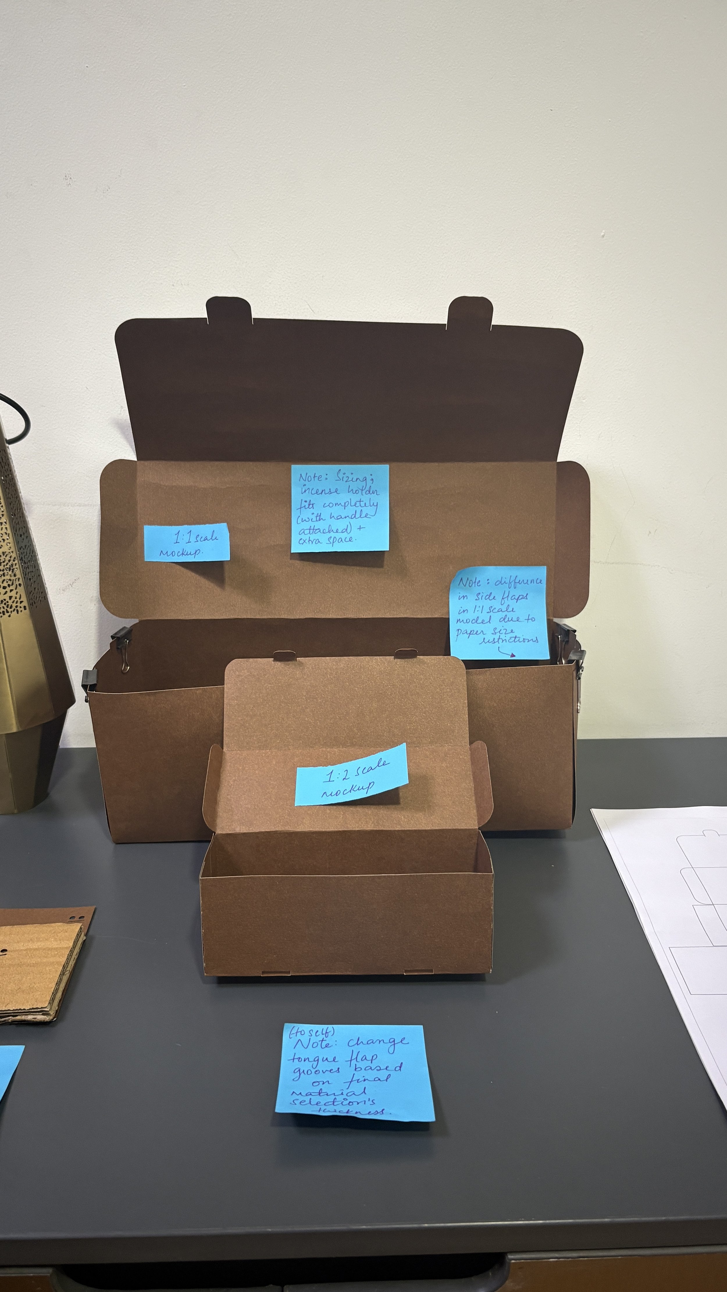 This was the first iteration. We later developed a second version, as seen in the final design, which offered greater support and structural integrity. (No visual record available for that stage.)